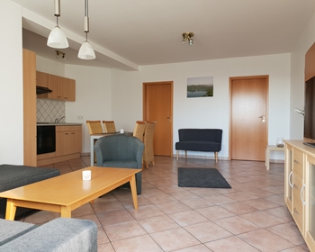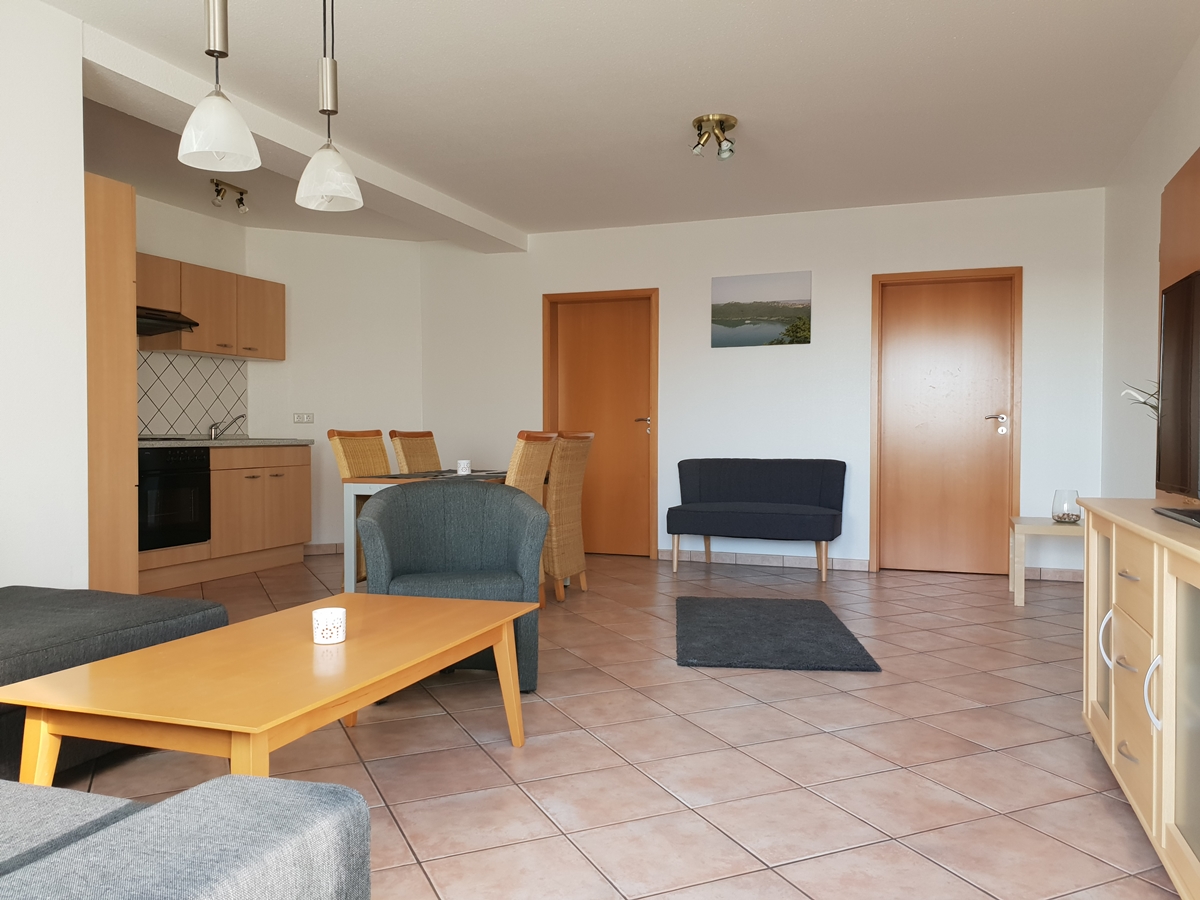 Bestehend aus einem großzügigem Wohnraum mit komplett eingerichteter Küche und einem Schlafsofa, einem separatem Schlafzimmer, einem kleinen Abstellraum und einem Badezimmer mit bodengleicher Dusche und Regenbrause. Wir bieten Ihnen 42 Zoll Sat-TV, WLAN, Radio-CD und einen PKW- Stellplatz direkt vor dem Haus.