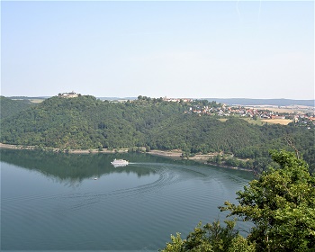 Die Burg liegt hoch über dem Edersee mit einem herrlichen Blick über den See, die Stadt Waldeck und die umliegenden Wälder.